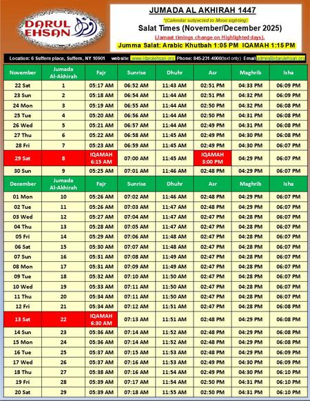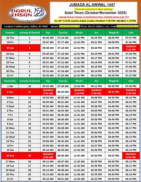 INSHA'ALLAH, Jumma Times as of November 2nd 2025: